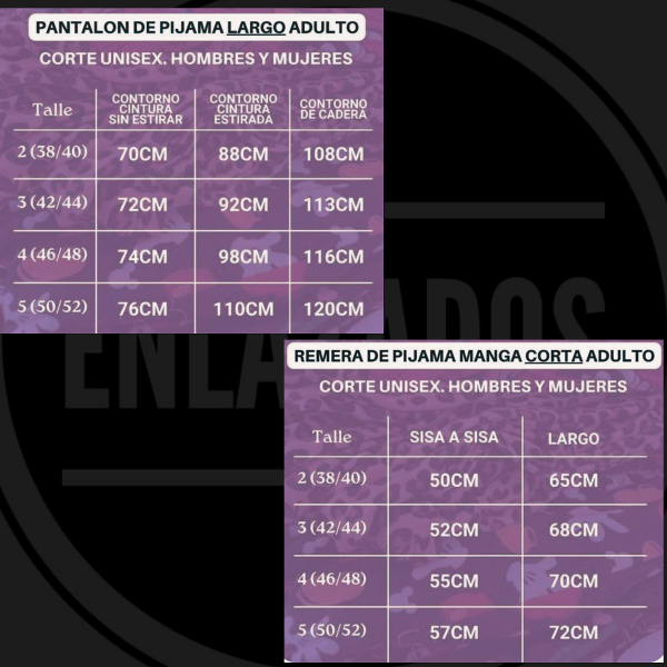 Pantalón elastizado en la cintura y en el largo de las piernas, con bolsillos. Remera y pantalón corte unisex (para hombre y mujer).